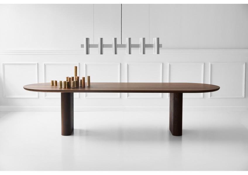 dk3 har nå relansert den karakteristiske lampen i 900 · 112-versjonen med 12 lyskilder montert på én opphengsskinne. Lampen er tilgjengelig i messingfarget anodisert aluminium og leveres med forhåndsmontert ledning, klar til å henge opp.