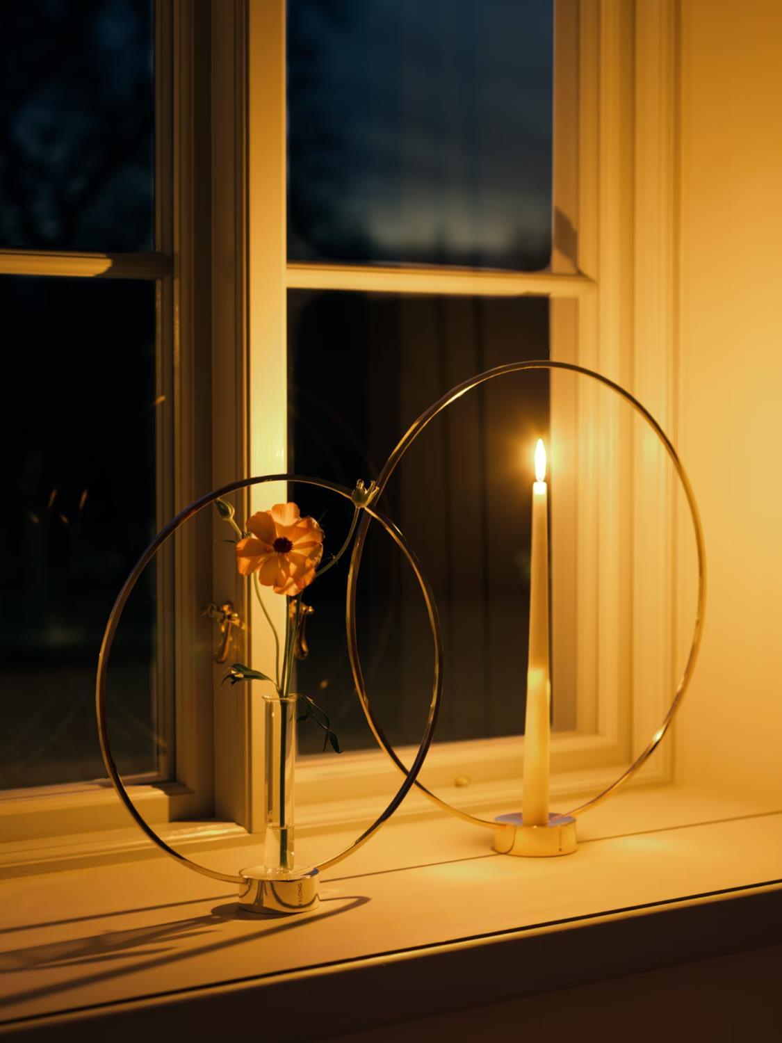 Gloria er en lysestake med en skjør sirkel av messing eller forniklet messing. Når lyset er tent skaper det en nydelig glød, og sirkelen som omringer lyset gir en unik effekt hvor flammen får skinne i sentrum. Når lyset er slukket blir staken en dekorativ og elegant skulptur i rommet.