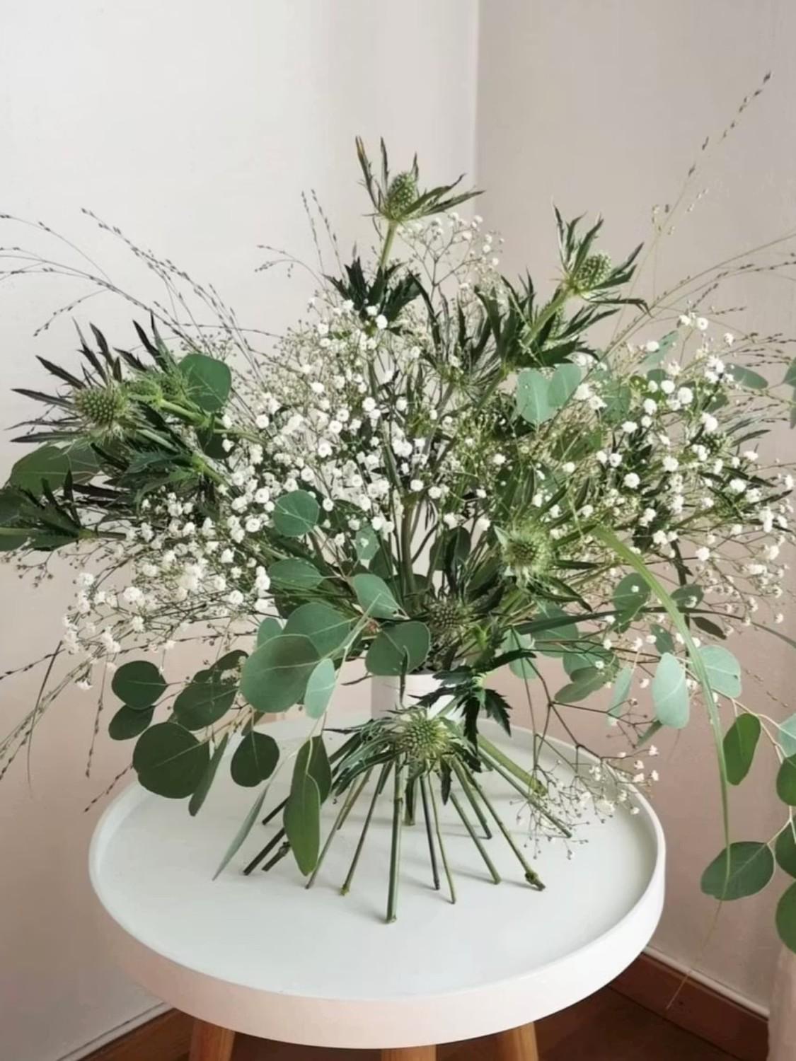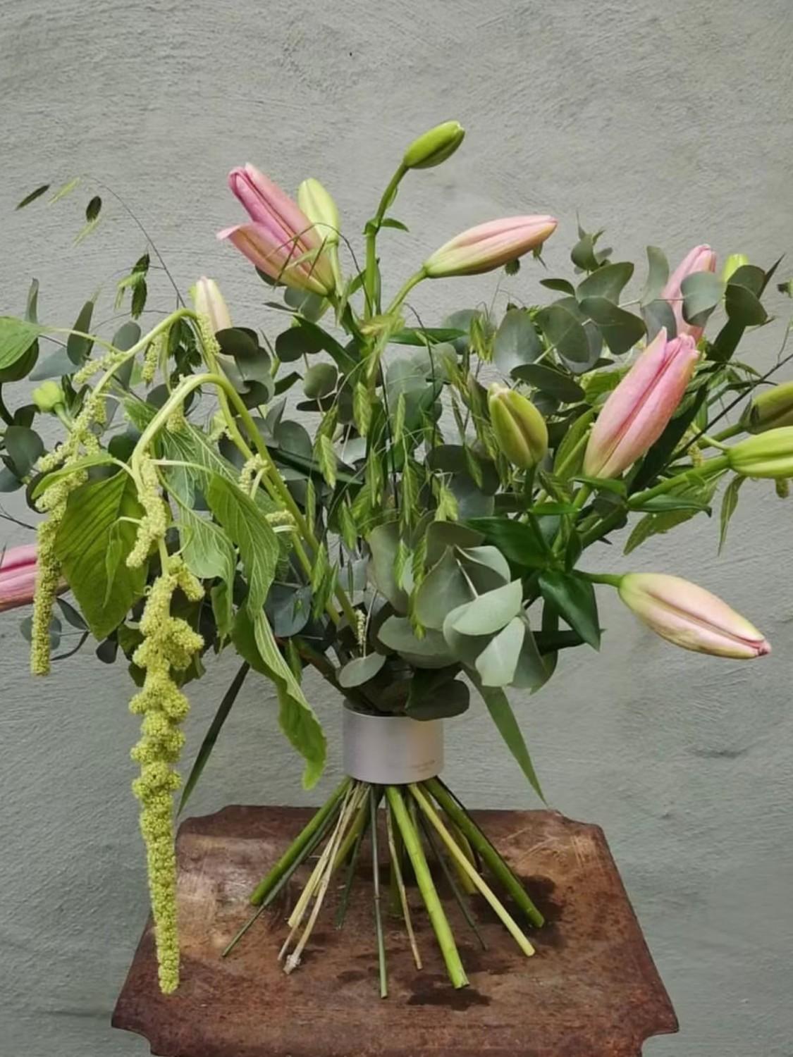 Takket være det store volumet buketten har, kan den stå på egne stilker, noe som gir buketten et helt nytt uttrykk.