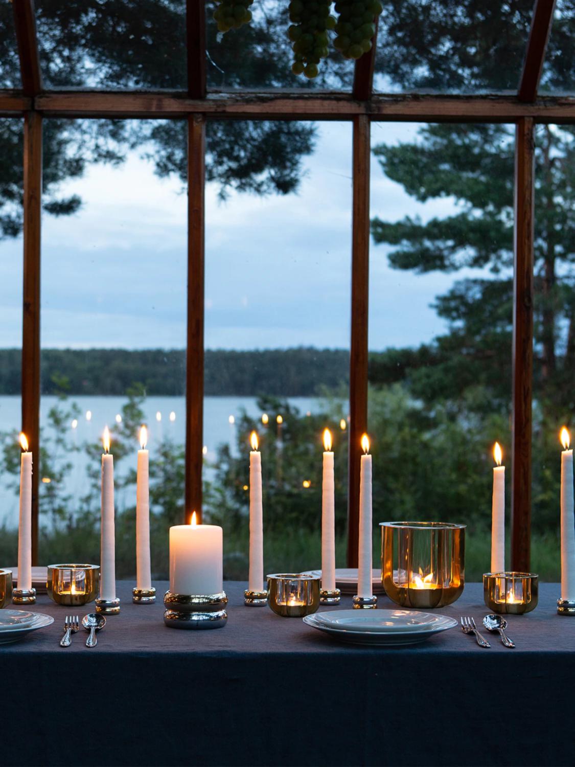 Når de er tent, projiserer messingstengene vakre skygger når de lyser opp et rom.
