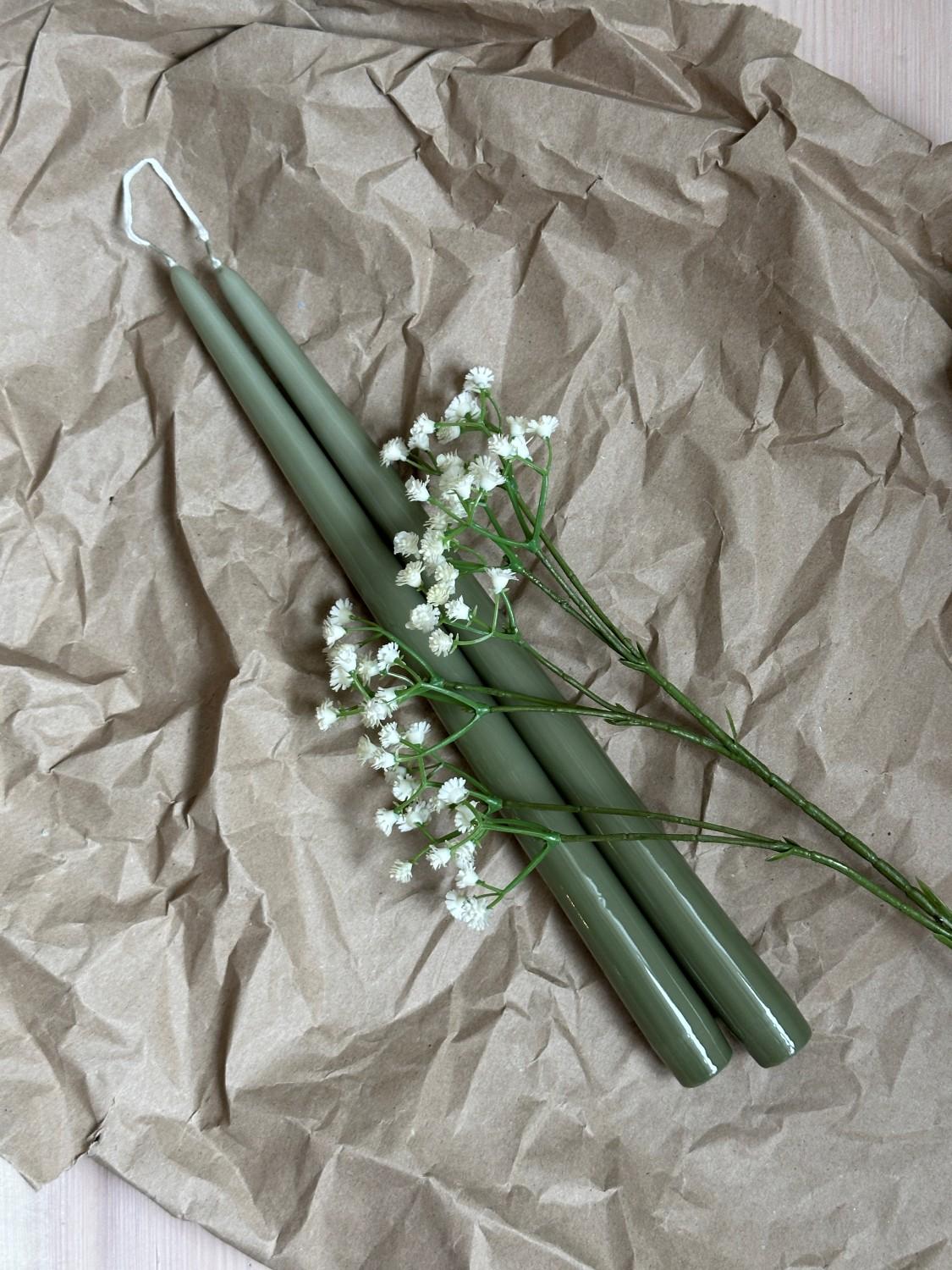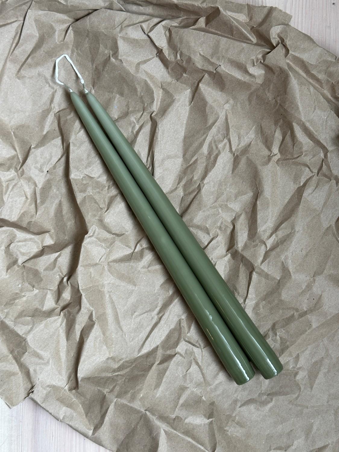 Lakk Kronelys 32 cm, Støvet Oliven, 2 stk