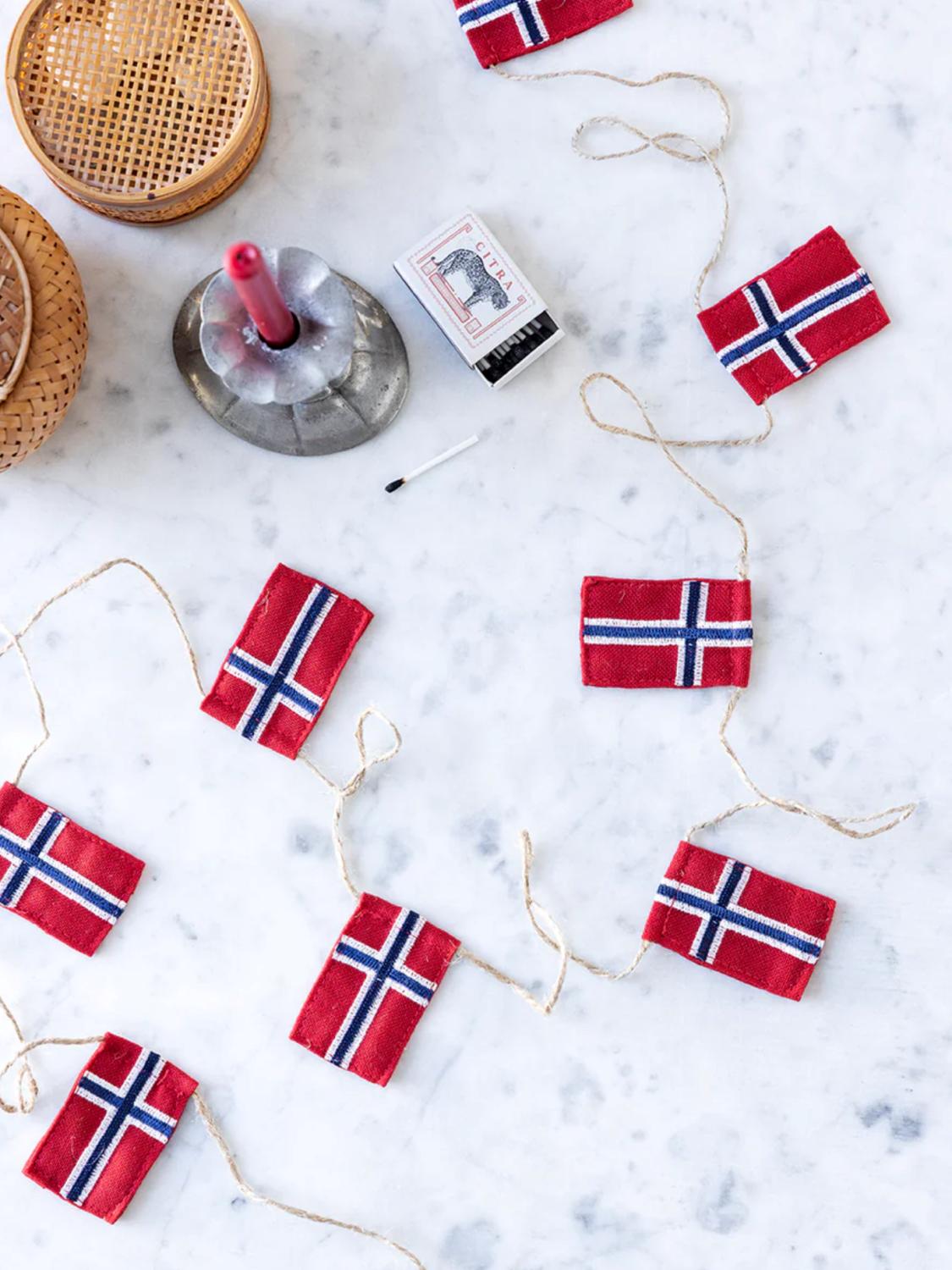 Mål: Hvert flagg måler 3,5 x 6 cm og hele rekken er på 200 cm.