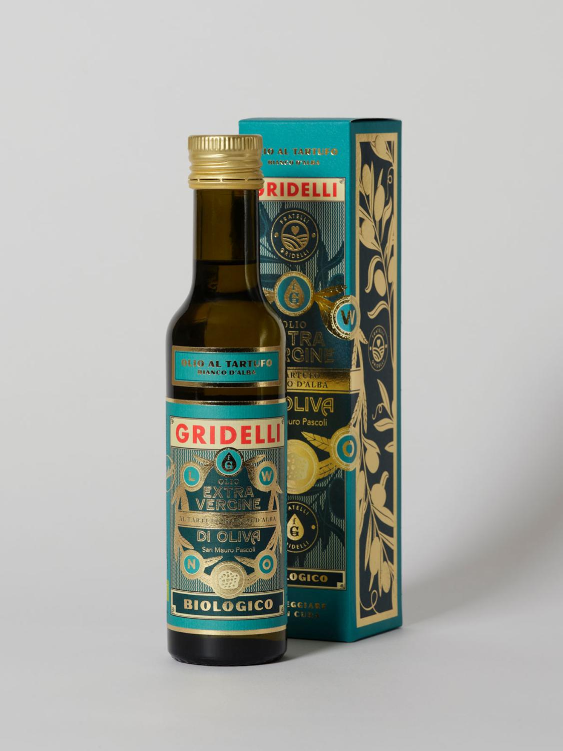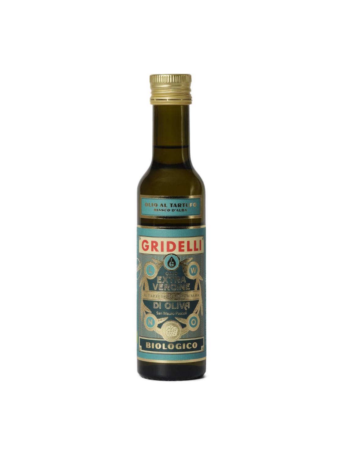Denne økologisk olivenoljen er smakssatt med naturlige økologiske aromaer av hvit trøffel fra Alba. Olivenoljen er av typen extra vergine og lages av oliventypen Correggiolo. Oljen har en tydelig og behagelig tone av trøffel og den passer perfekt til å dryppe over en deilig risotto, en italensk pizza eller en god pastarett med sopp og salsiccia.