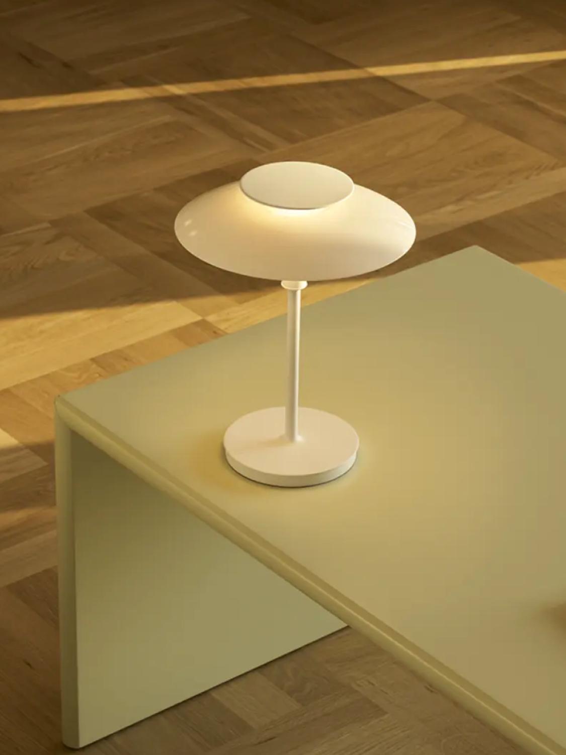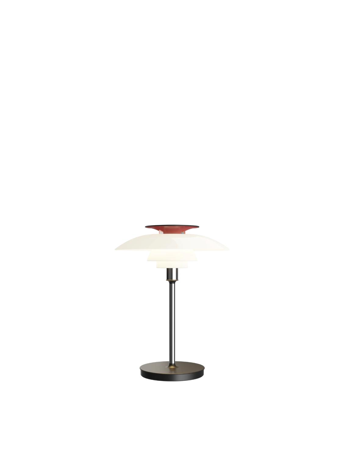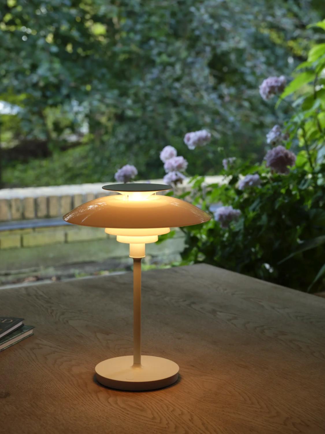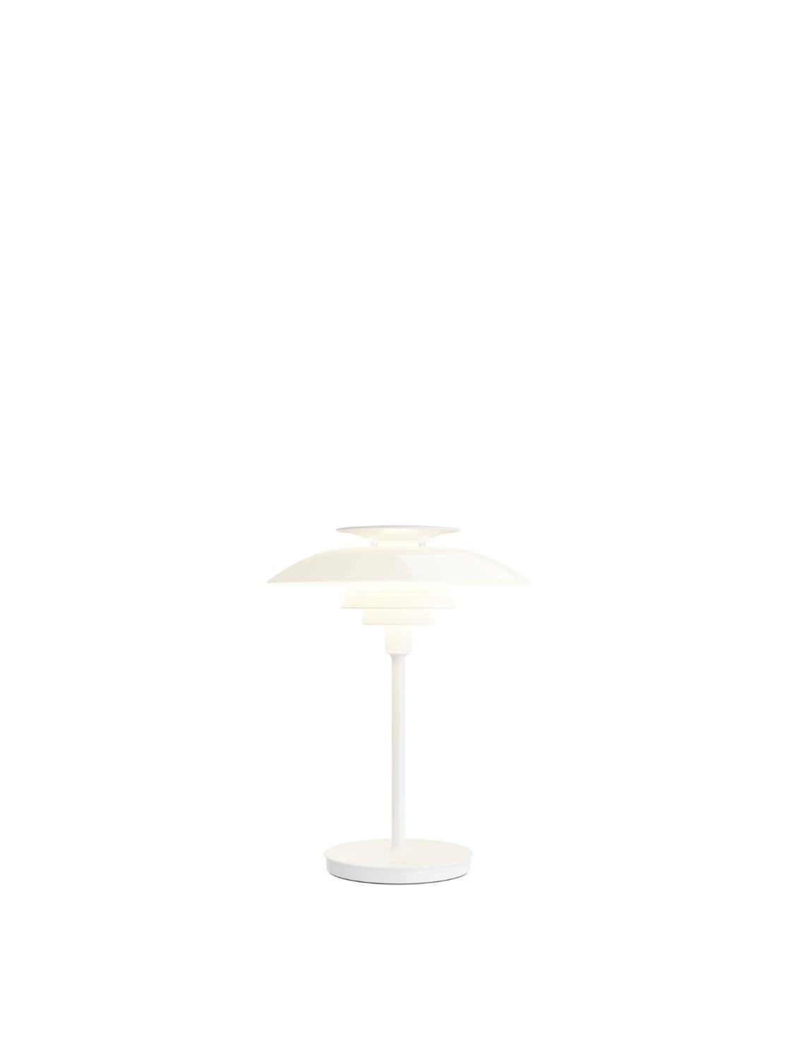 PH 80 Portable er en moderne, oppladbar tolkning av den klassiske lampen. Den viderefører det karakteristiske treskjermsystemet, som gir et mykt, blendefritt og behagelig lys. Den tidløse formen kombinert med varmt og diffust lys gjør lampen ideell både som stemningsbelysning og til praktisk bruk. Passer til innendørs og utendørs bruk.
