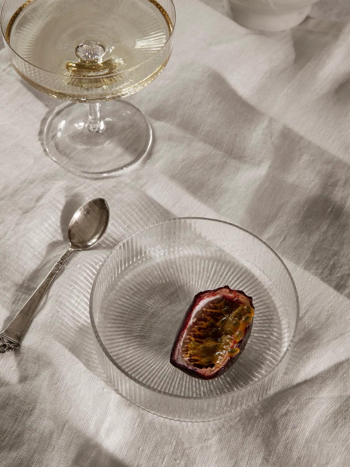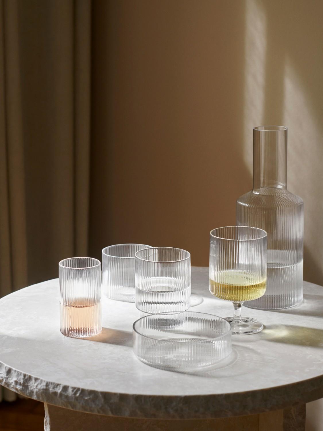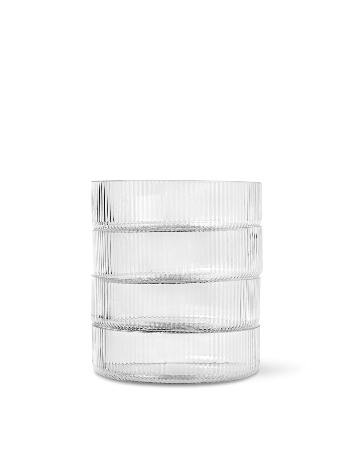 Ripple er en serie av munnblåst glass med en vakker ruglete overflate skapt av vertikale riller som gir glassene et stramt og sofistikert utrykk. Det enkle designet gjør det mulig å stable stålene for enkel oppbevaring. Sett dem sammen med de matchende champagneglassene for et stilig sett til desserten, eller disk opp med yoghurt og granola til frokost.