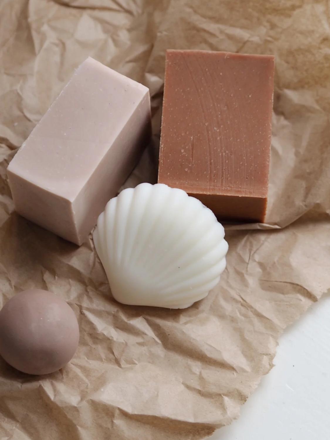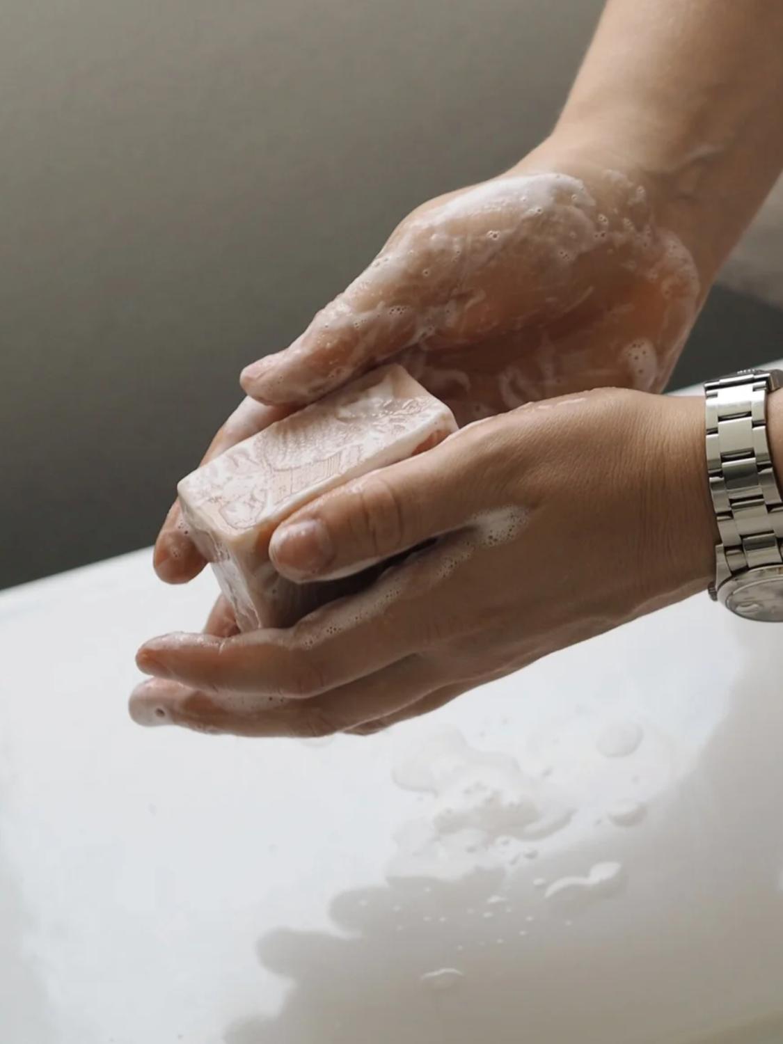 En kaldpresset såpebar med rosa fransk leire og duft av lavendel. Såpen er mild og kan brukes av alle hudtyper.