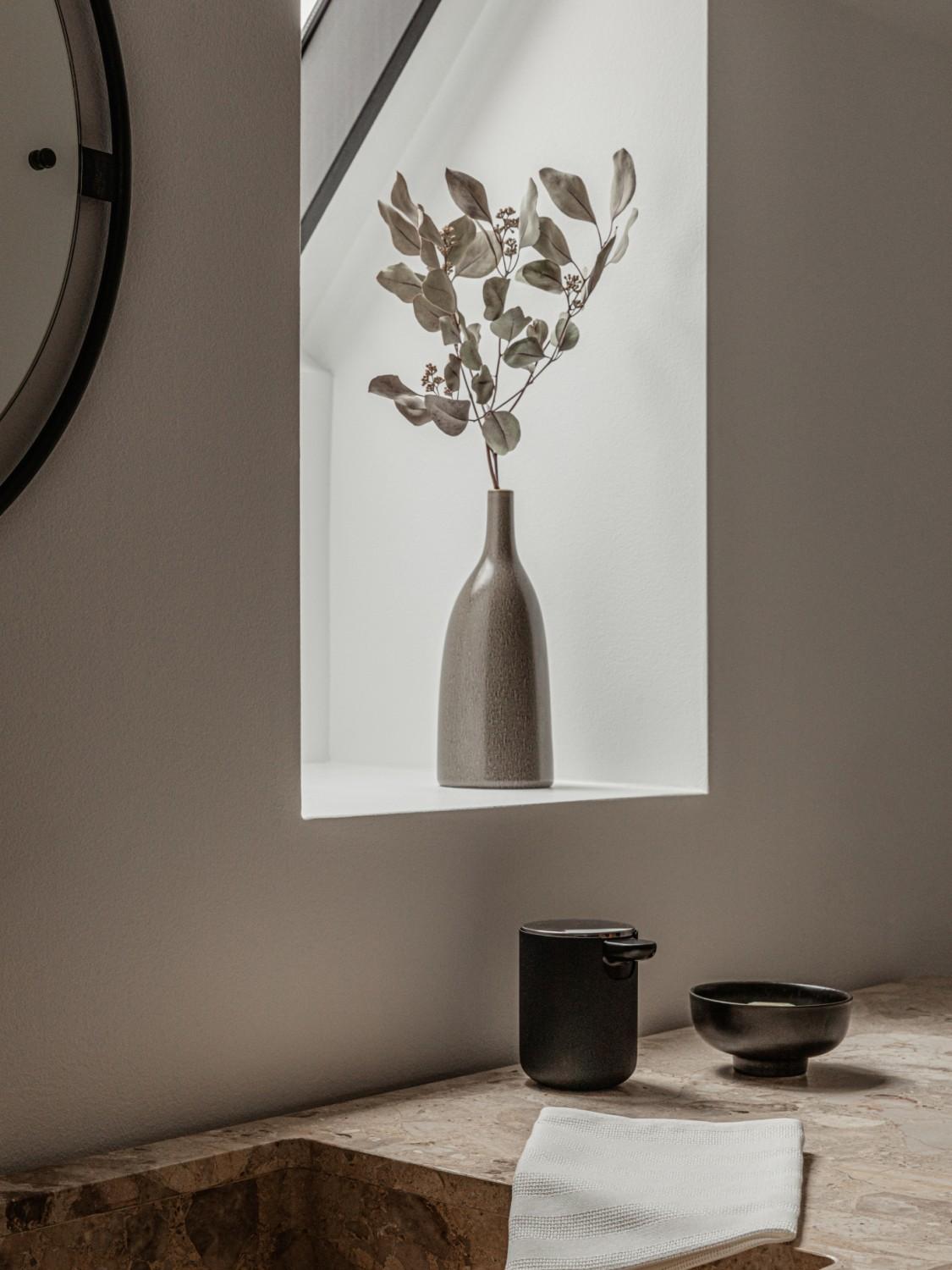 Vasen er en del av Strandgade-kolleksjonen, designet for Audo av de København-baserte arkitektene Mentze Ottenstein og oppkalt etter den historiske gaten de bor i, og gjenskaper tradisjonene for samhørighet.