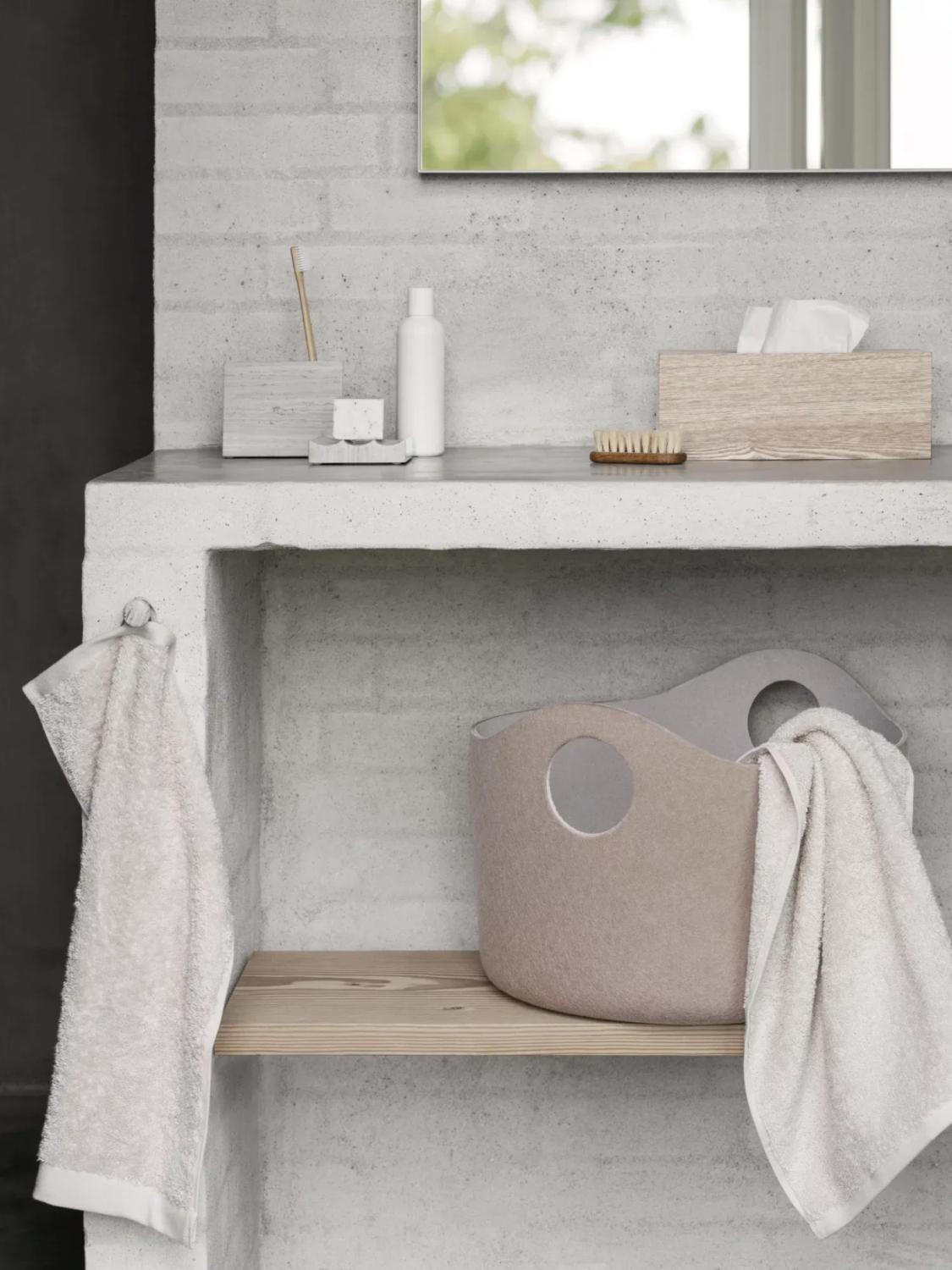 Tiggy filtkurv er en allsidig oppbevaringskurv som passer til det meste. Bruk den på badet, som papirkurv på kontoret, for oppbevaring av pledd i stuen eller til lekeoppbevaring på barnerommet. Kurvene er laget av myk filt og har håndtaksutskjæringer for enkel bæring.