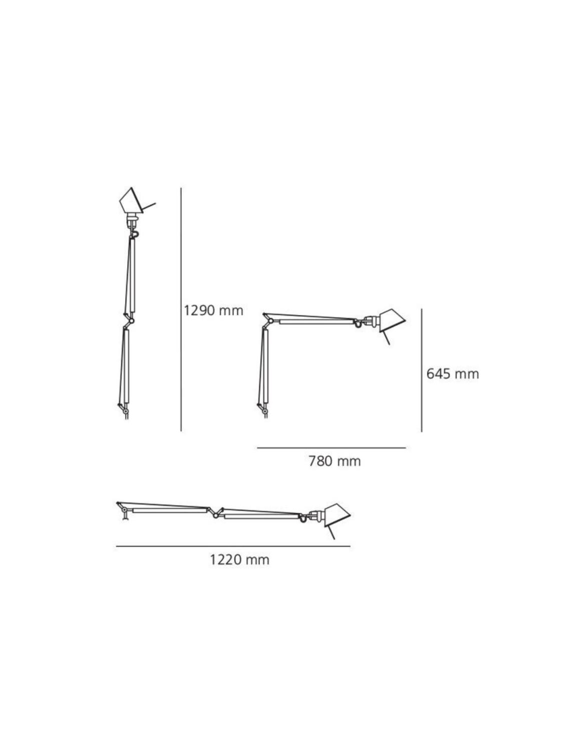 Lampen har en fleksibel kropp som gjør at lyset enkelt kan rettes dit det er ønsket. Sokkel og armer er laget av polert aluminium og diffusoren er laget av anodisert aluminium. Lampen er smidig og enkel i sin form, og den kan plasseres over sengen som en leselampe eller andre steder der plassen er begrenset. Lampen er tilgjengelig med en integrert og LED-pære som kan dimmes, for varianten i aluminium. Lyskilde er ikke inkludert for sokkel E27.