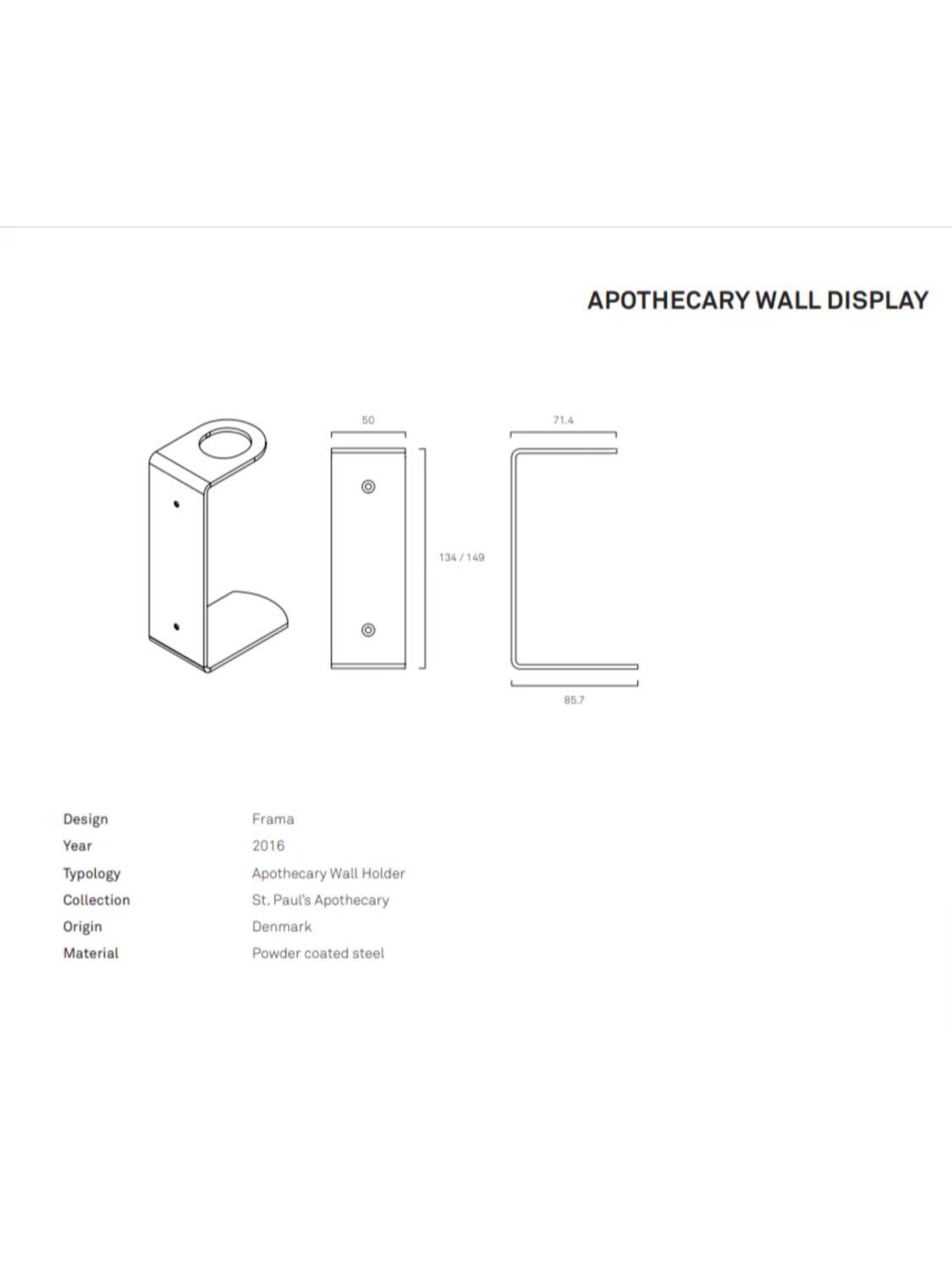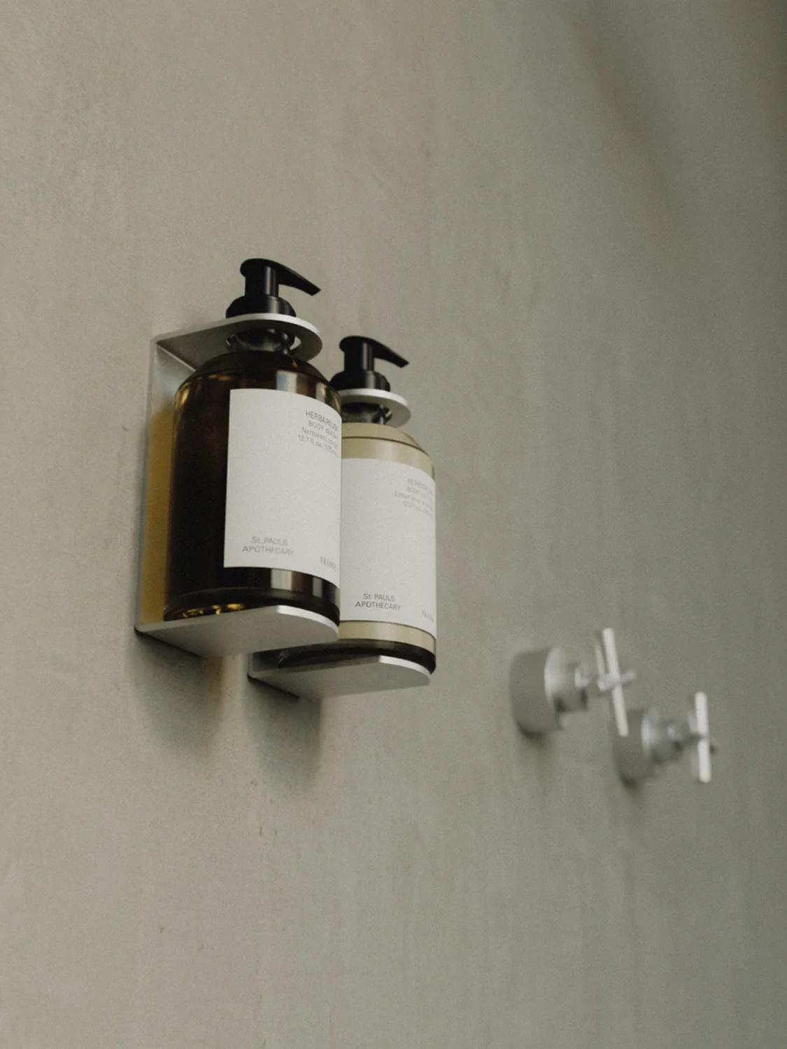 Frama`s enkle veggfeste er laget av rustfritt stål kan holde alle Frama`s 375 ml flasker fra Apothecary serien.